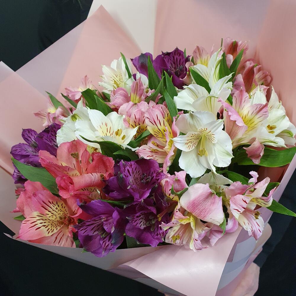 Альстромерия – 11 шт.Упаковка дизайнерская – 1 шт.Лента атласная – 1 шт.