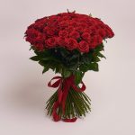 червона троянда – 101 шт. стрічка бархатна – 1 шт.