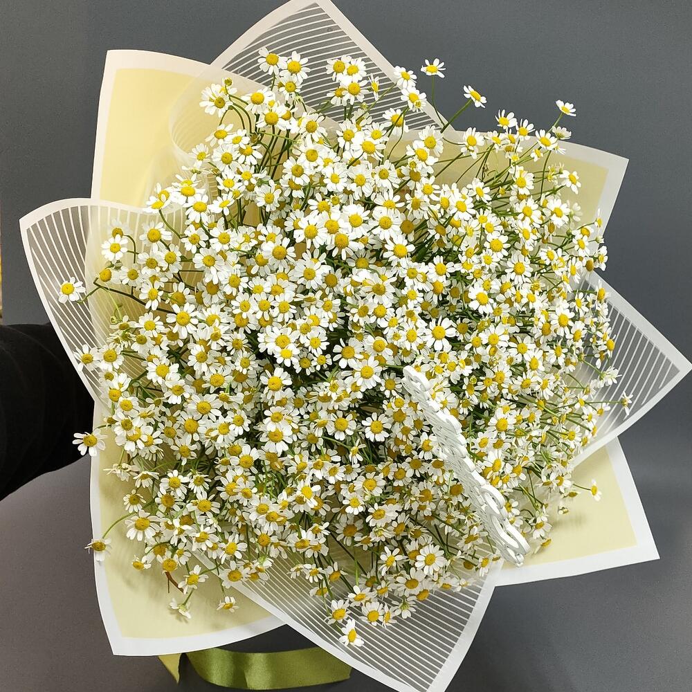 Матрикария – 21 шт.Пленка матовая – 1 шт.Лента атласная – 1 шт.Топпер – 1 шт.