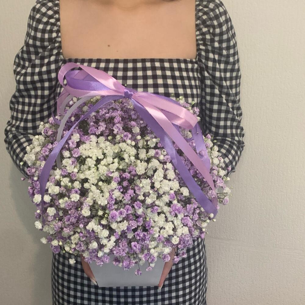 Гипсофила – 7 шт.Сумочка картонная – 1 шт.Оазис флористический – 1 шт.Лента атласная – 1 шт.