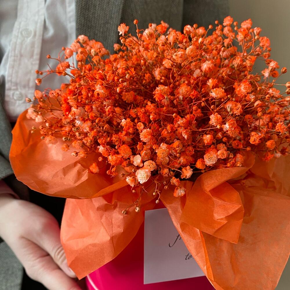 Гипсофила – 3 шт.Тишью – 1 шт.Шляпная коробка – 1 шт.