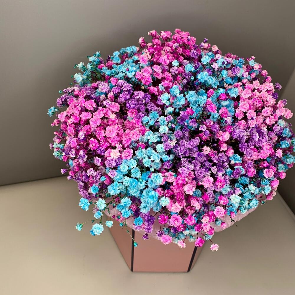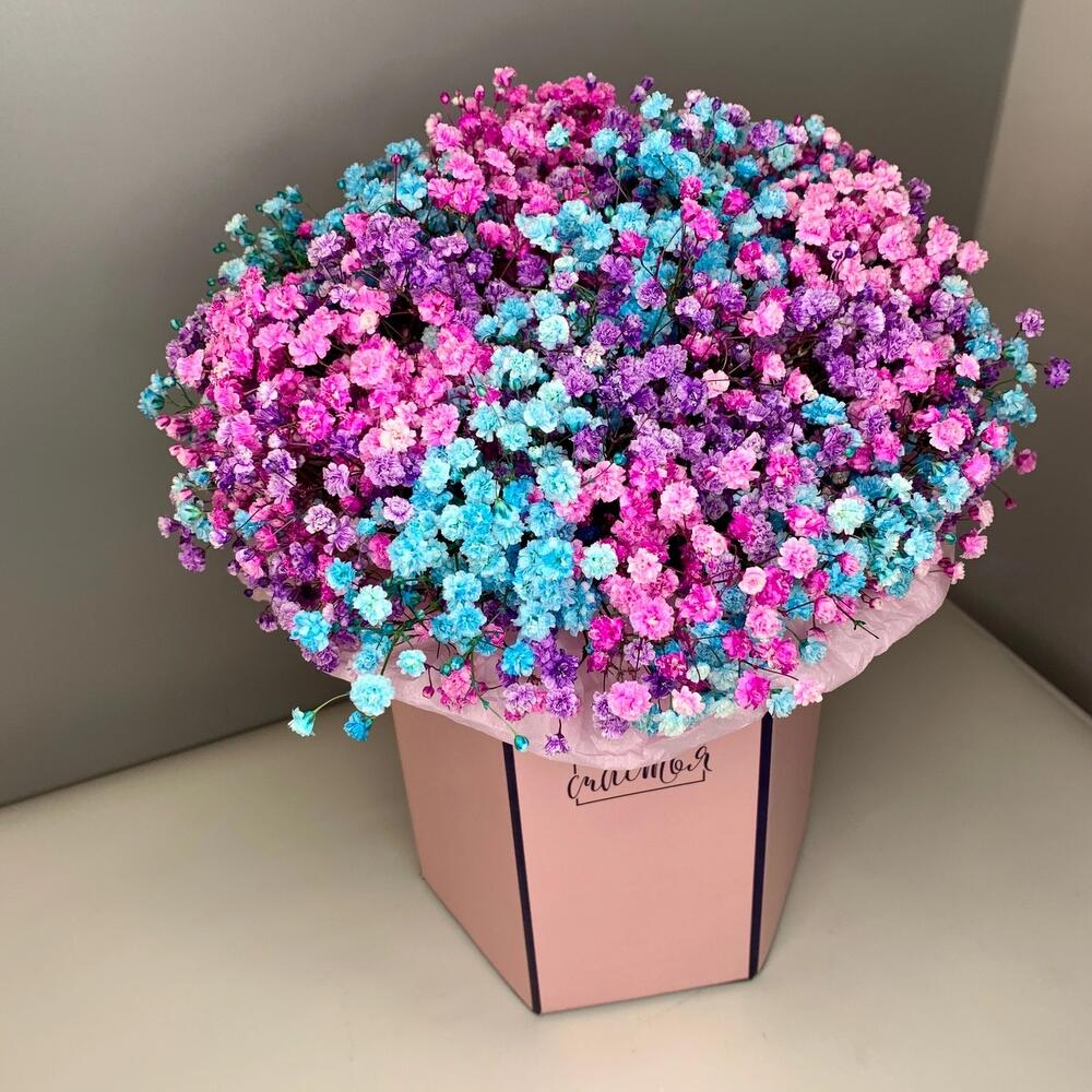Радужная Гипсофила в розовой коробке