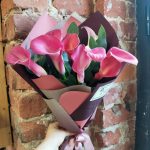 Букет из 9 розовых калл с эвкалиптом