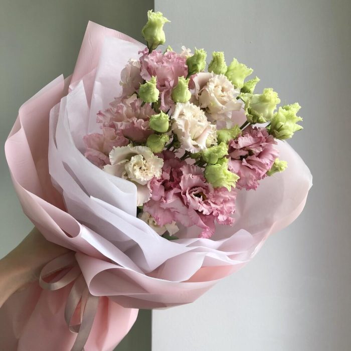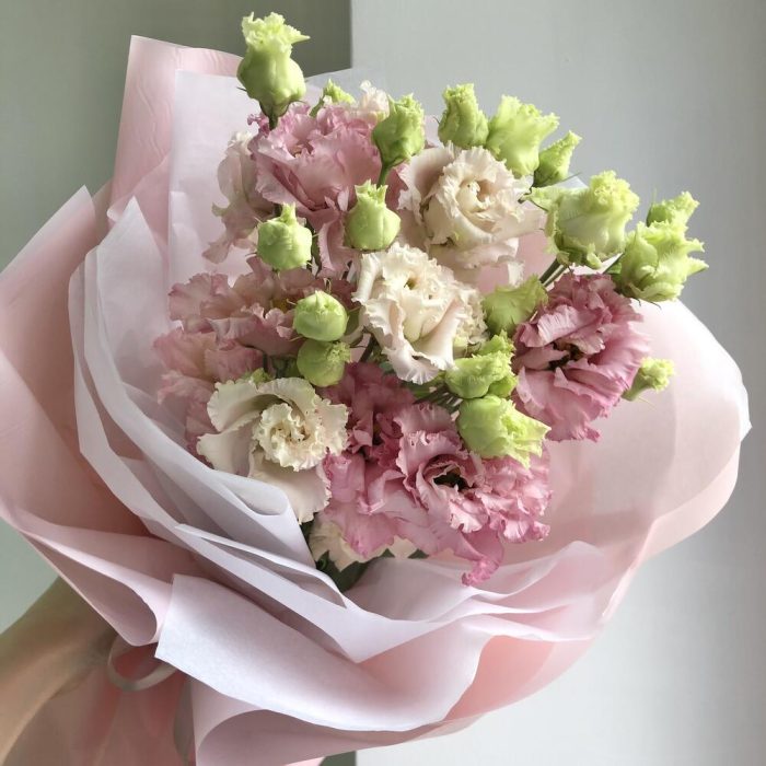Веточки ажурной эустомы в нежном оформлении