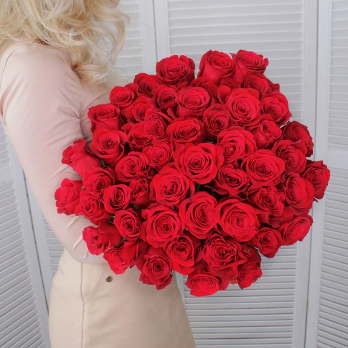 Роза Эквадор – 51 шт.Лента атласная – 2 шт.