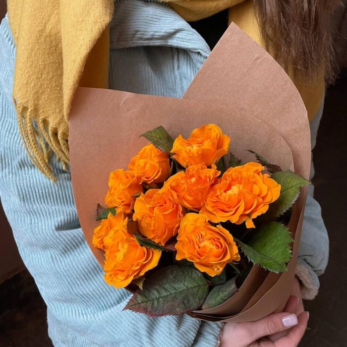 Крафт упаковка – 1 шт.роза оранжевая россия – 9 шт.