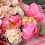 Авторский букет с пионами Коралл Шарм