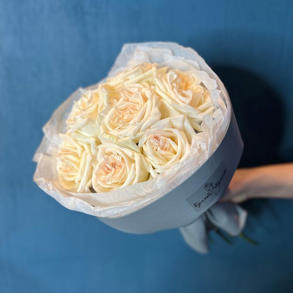 Лента атласная – 1 шт.Тишью – 2 шт.Фоамиран – 1 шт.роза white o’hara – 7 шт.