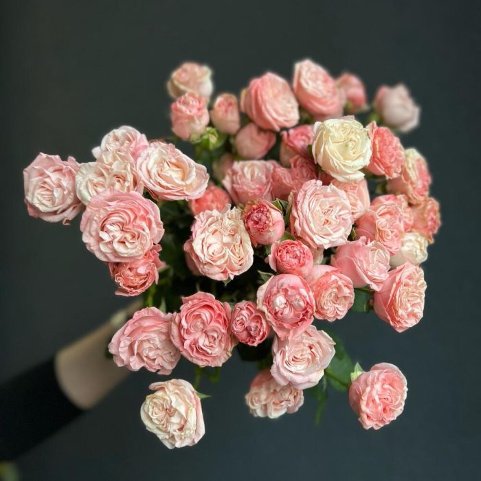 Кустовая пионовидная роза – 11 шт.Атласная лента – 1 шт.