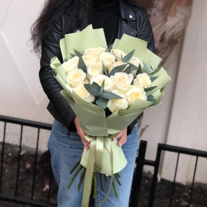 Букет из 15 белых высоких роз