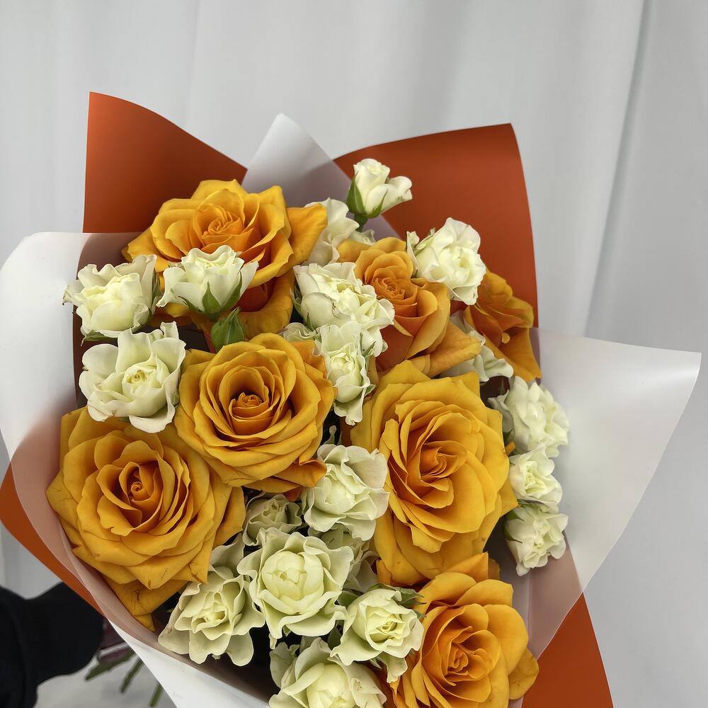 Букет из 15 кустовых и одноголовых роз
