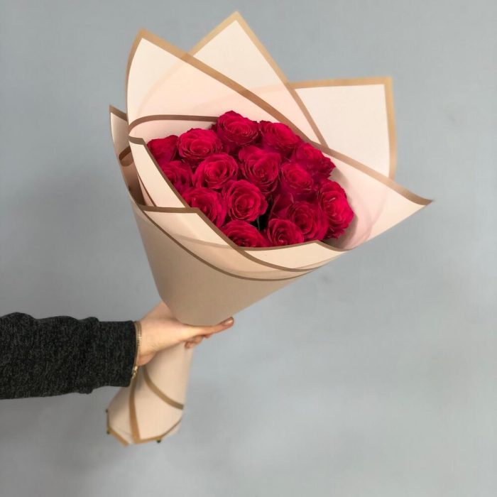 Лента атласная – 1 шт.Матовая пленка – 1 шт.роза кения – 15 шт.