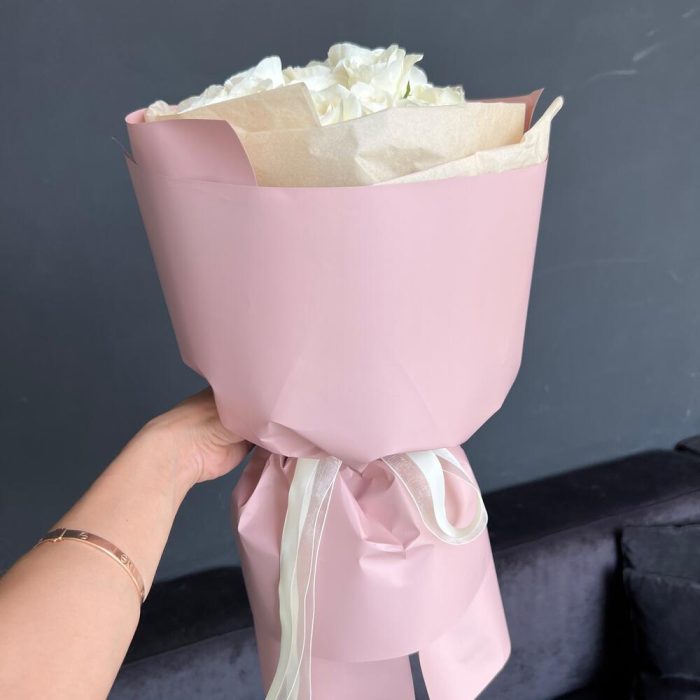 Роза 70 см – 23 шт.Пленка матовая – 1 шт.тишью кремовая хрустящая – 1 шт.