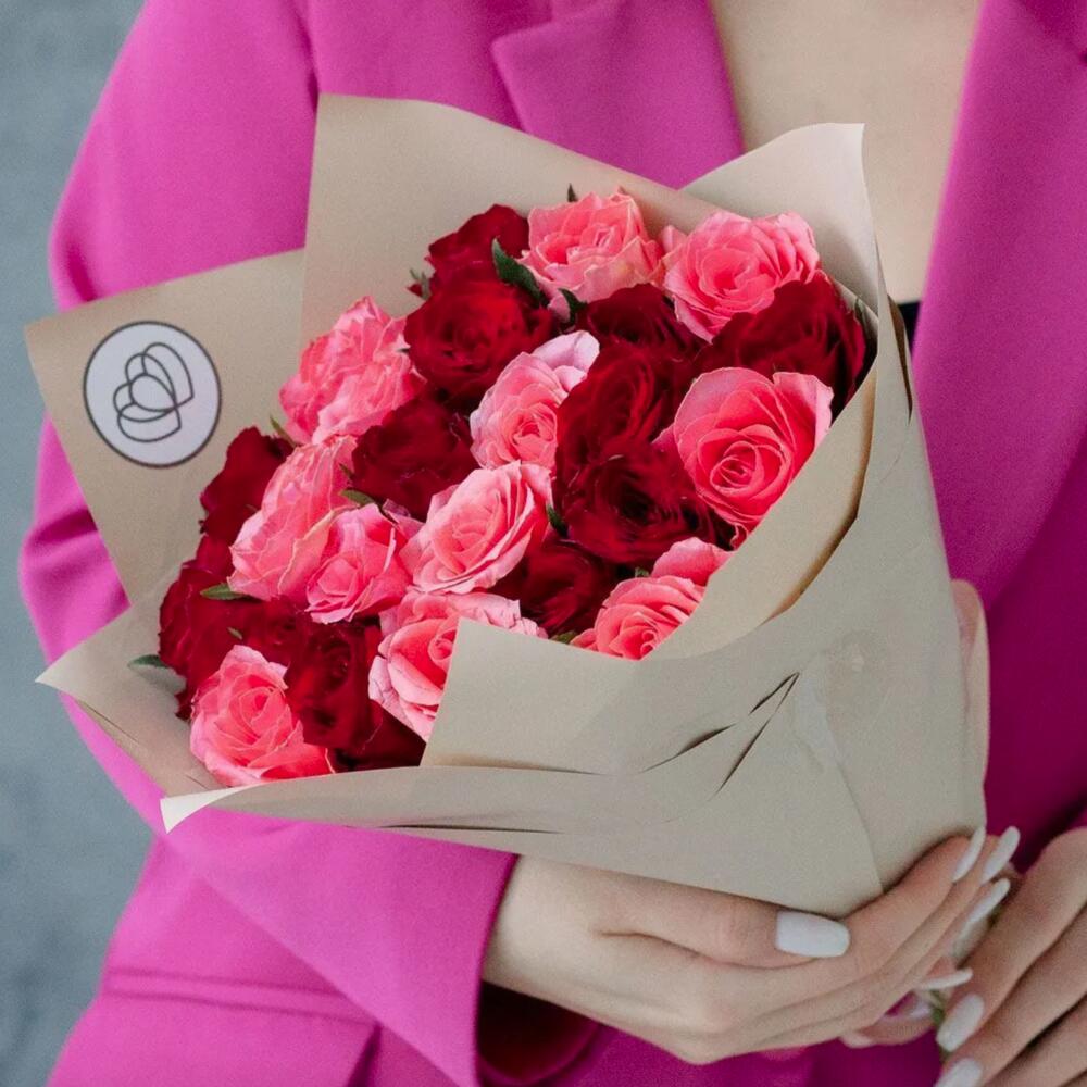 красные и коралловые розы (кения) – 25 шт.