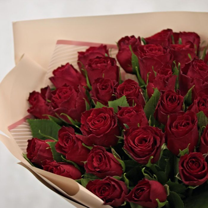 Букет из 35 красных роз 35-40 см (Кения) в стильной упаковке