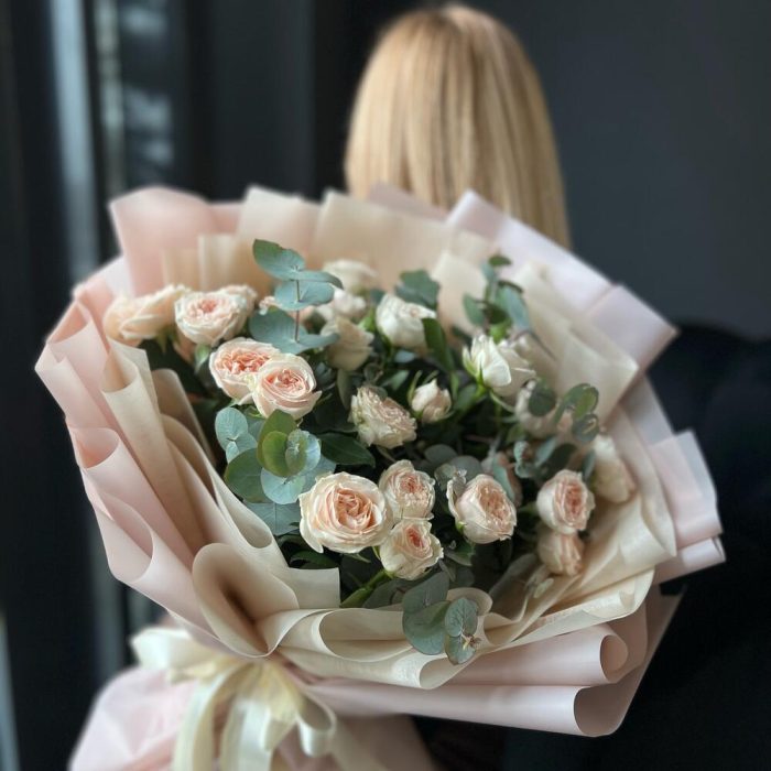 Букет из кустовой розы Павлова и эвкалипта
