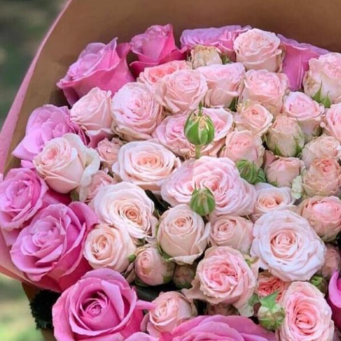Одноголовая роза – 15 шт.Кустовая роза – 20 шт.Упаковка дизайнерская – 1 шт.Лента атласная – 2 шт.Открыточка с вашими пожеланиями – 1 шт.хорошее настроение – 100 шт.инструкция по уходу за цветами – 1 шт.коробка переноска – 1 шт.Кризал – 1 шт.