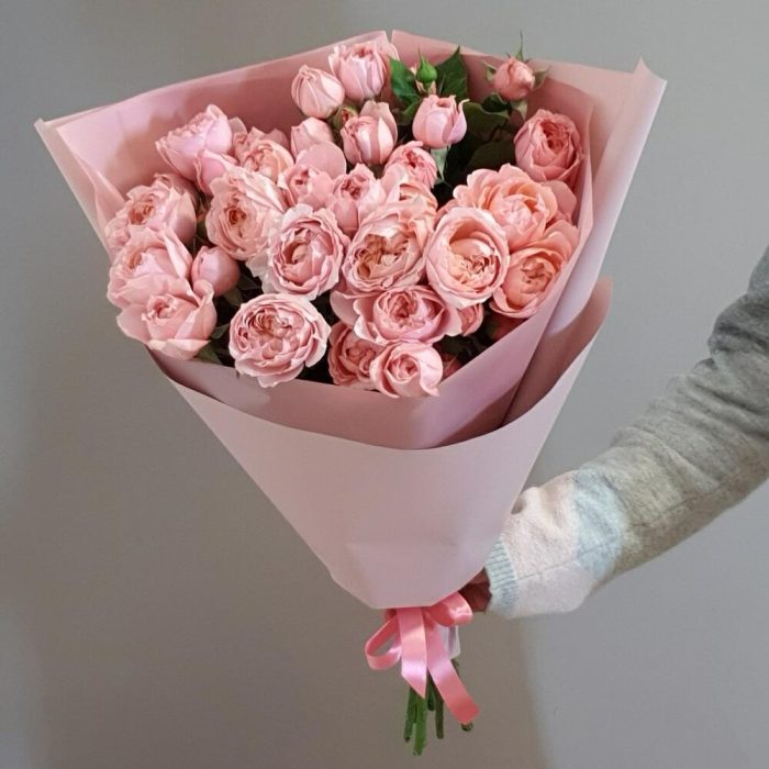 Упаковка – 5 шт.Лента атласная – 1 шт.роза садовая кустовая пионовидная – 9 шт.