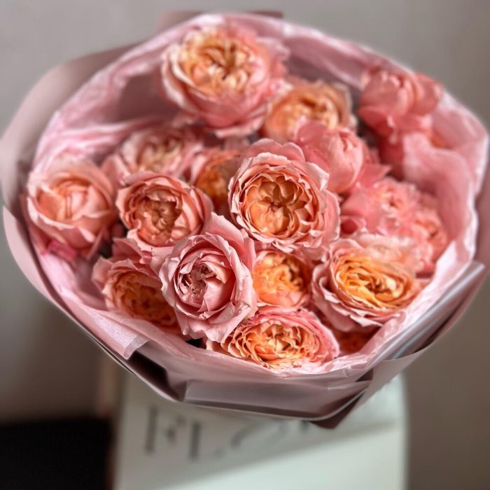 кустовая пионовидная роза julieta – 5 шт.декоративная упаковка – 1 шт.Атласная лента – 1 шт.