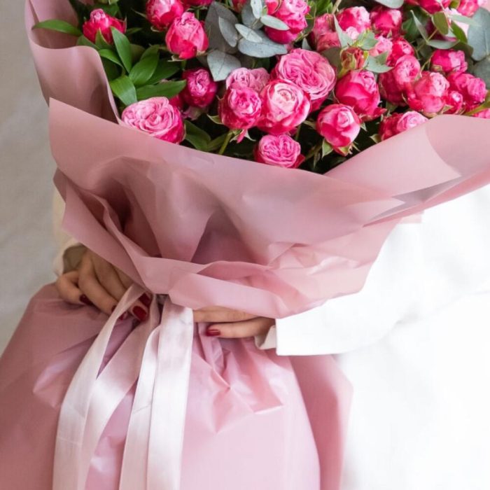 Эвкалипт – 5 шт. Кустовая роза – 10 шт.