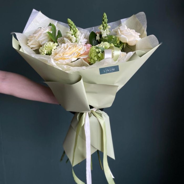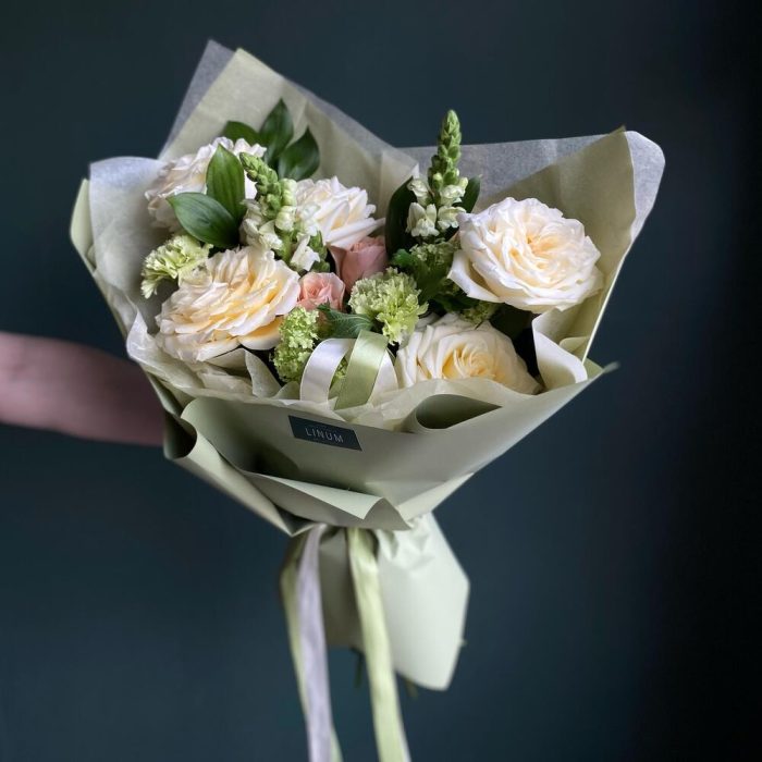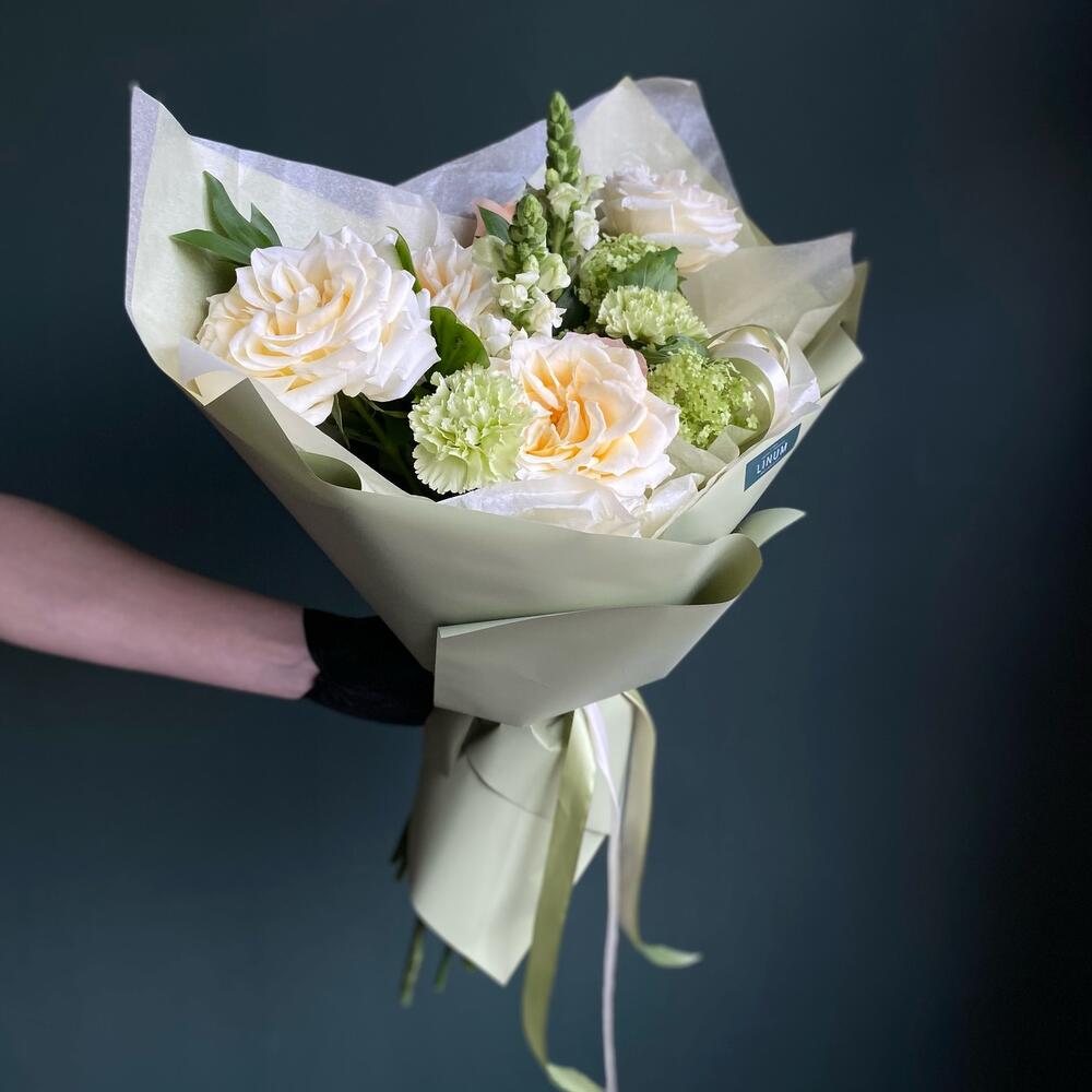 Букет с персиковой розой Фисташковый пломбир