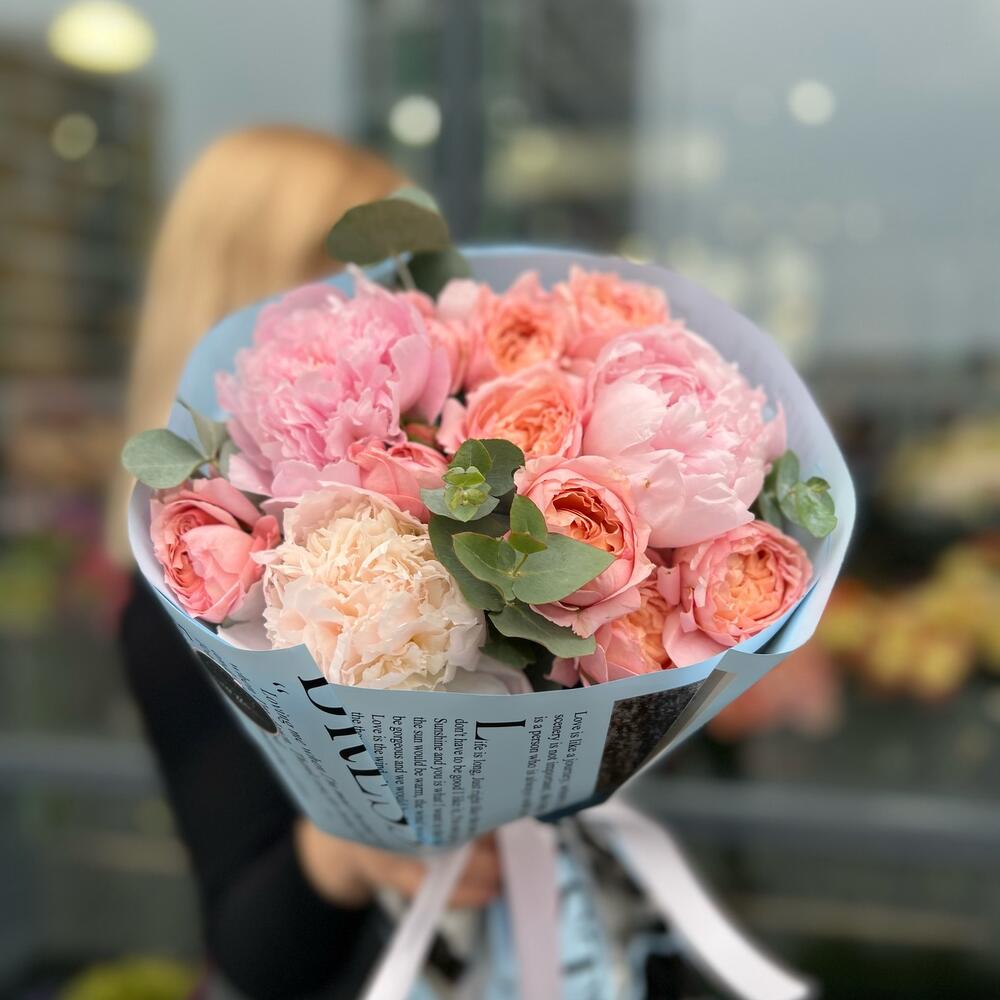 Букет с пионами и пионовидной розой