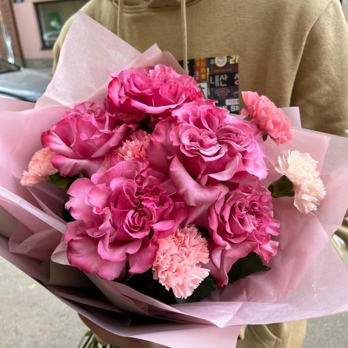 роза пионовидная кантри блю – 5 шт.диантус розовый микс – 6 шт.Упаковка дизайнерская – 2 шт.