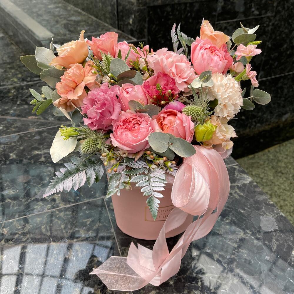 “В твоих глазах”: нежная шляпная коробка с французскими розами