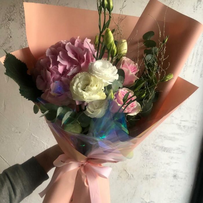 Ароматный букет с матиоллой,фрезией и лизиантусом