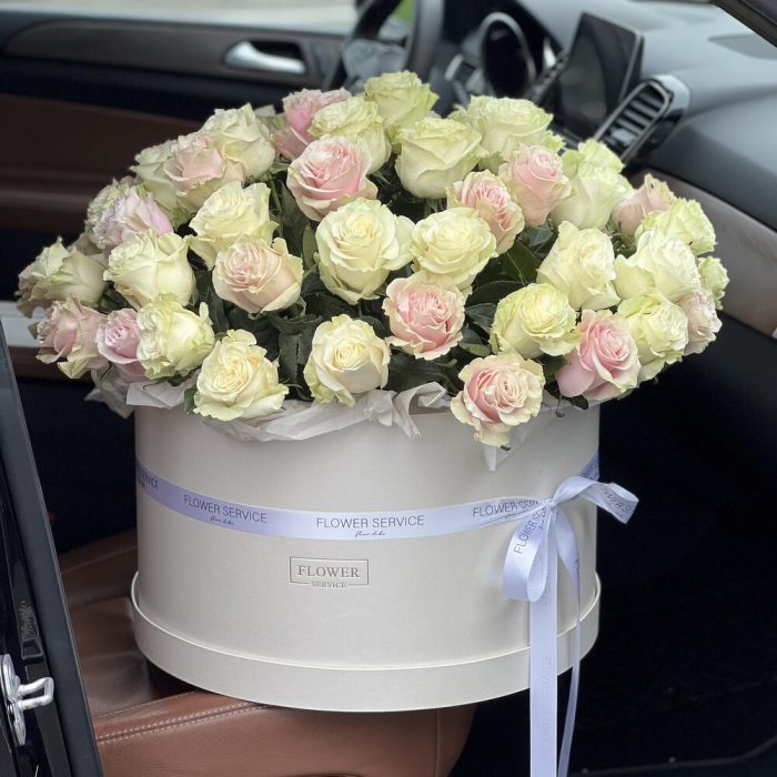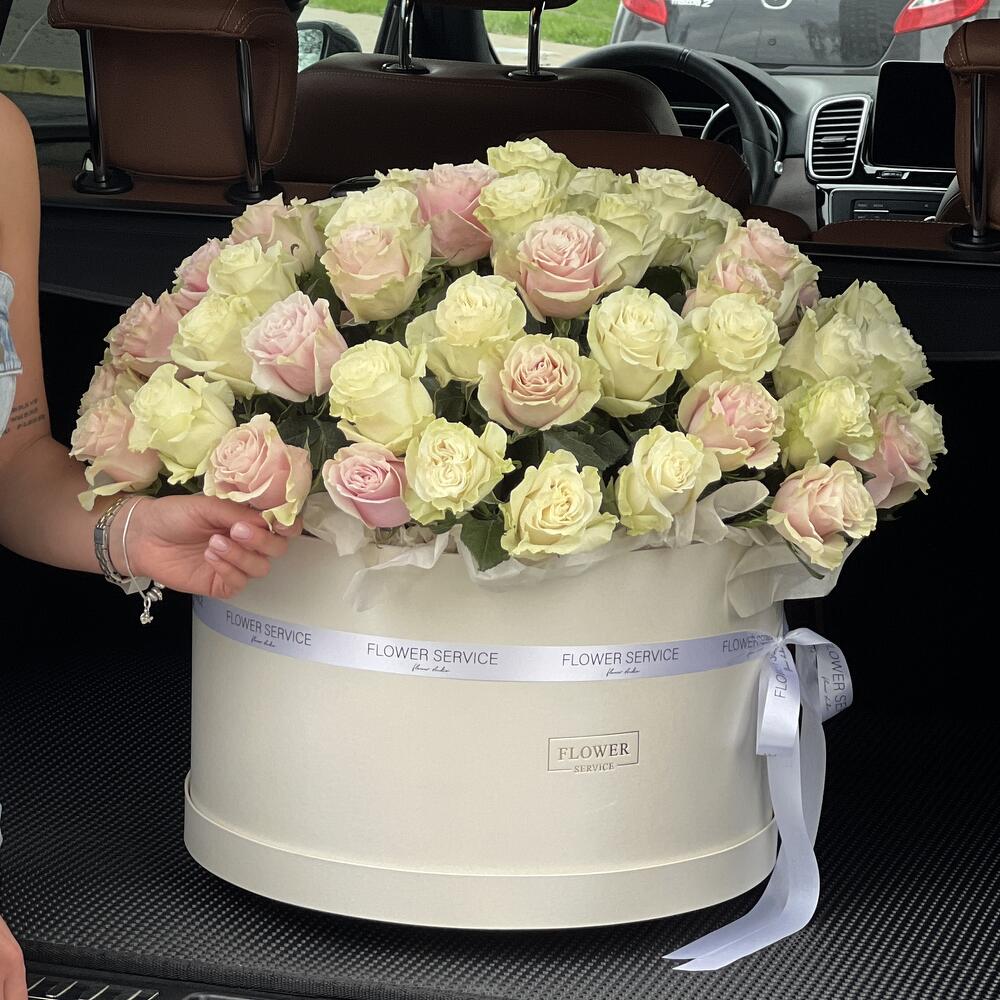 Шикарная коробка белых и розовых роз!