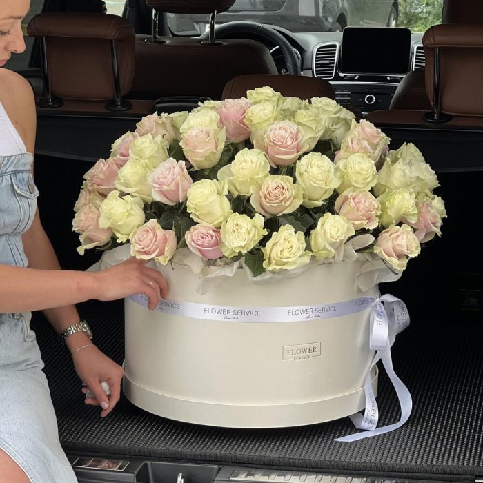 Коробка Нежные чувства из 75 белых и розовых роз