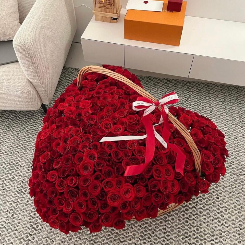 Корзина плетеная – 1 шт.Роза – 251 шт.