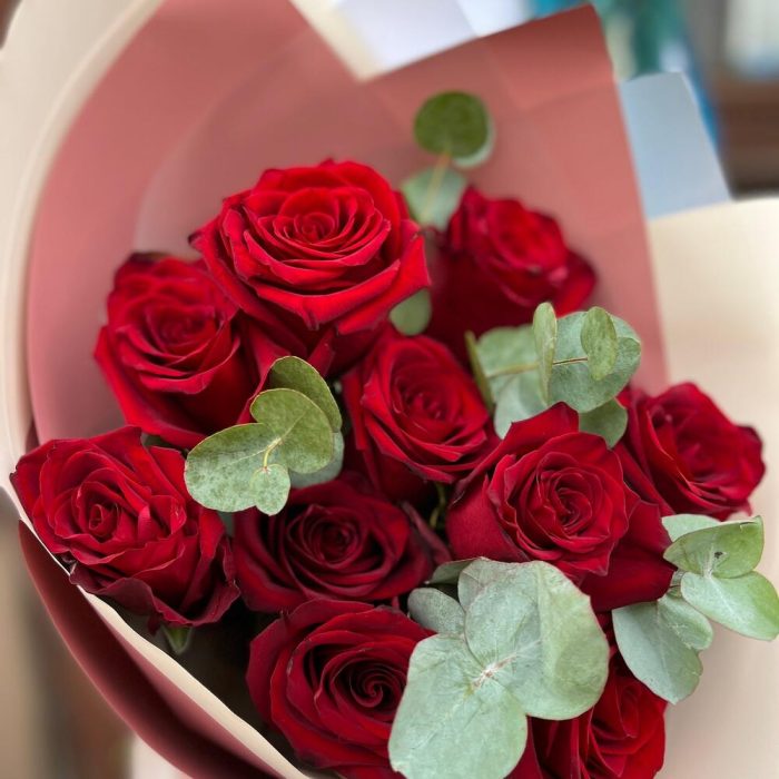 mono bouquet 58 из 11 роз сорта kahala с эвкалиптом