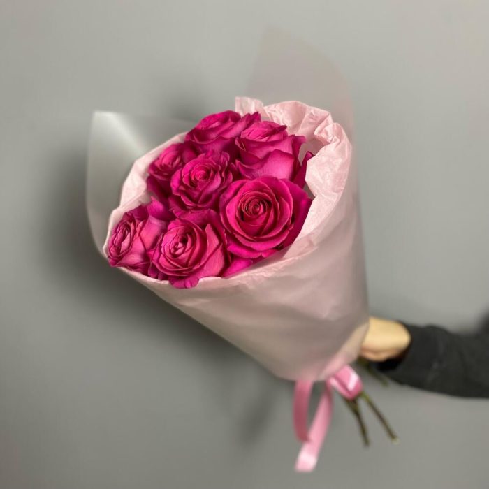 Тишью – 1 шт.Упаковка дизайнерская – 1 шт.роза pink floyd 60 см эквадор – 7 шт.