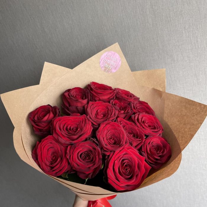 Метки: 15 роз, Красные розы, от 3000 до 4000 руб, Роза Роза 40 см