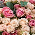 Объёмный Букет из кустовых пионовидных роз с эвкалиптом