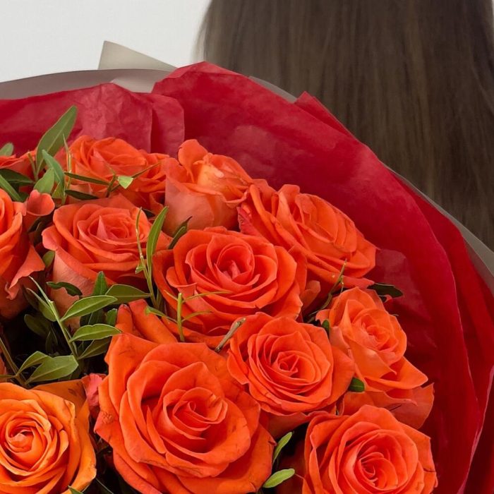 Оранжевое солнце - Букет с пионовидными розами и колючками
