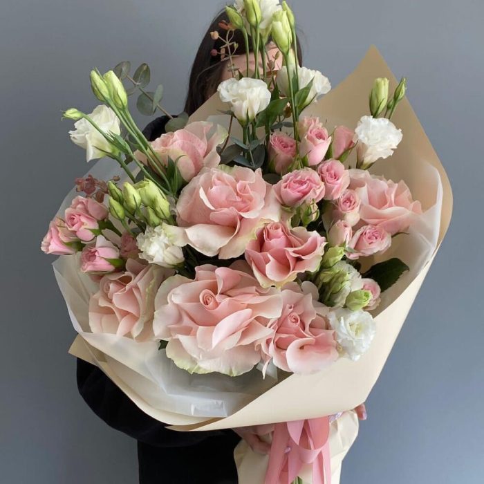Альстромерии, Гвоздики, Кустовые розы, Лизиантусы, Розы, Хризантемы