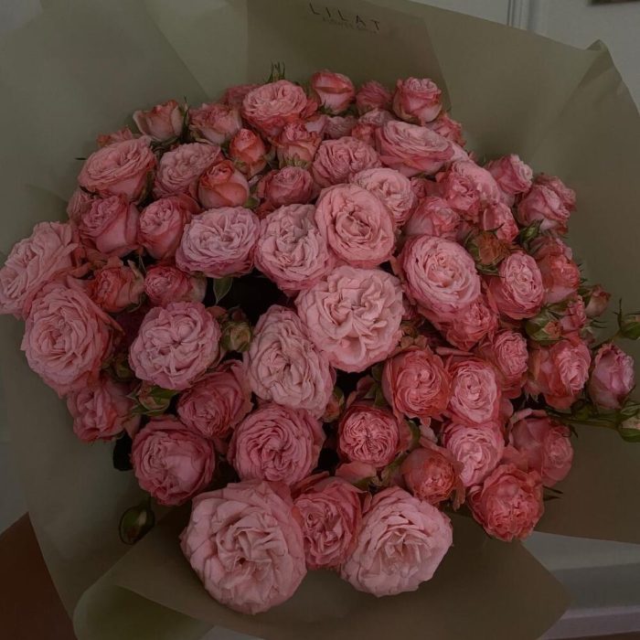 Пионовидная кустовая роза – 25 шт. Дизайнерская упаковка – 3 шт. Открыточка с вашими пожеланиями – 1 шт. доставка – 1 шт.