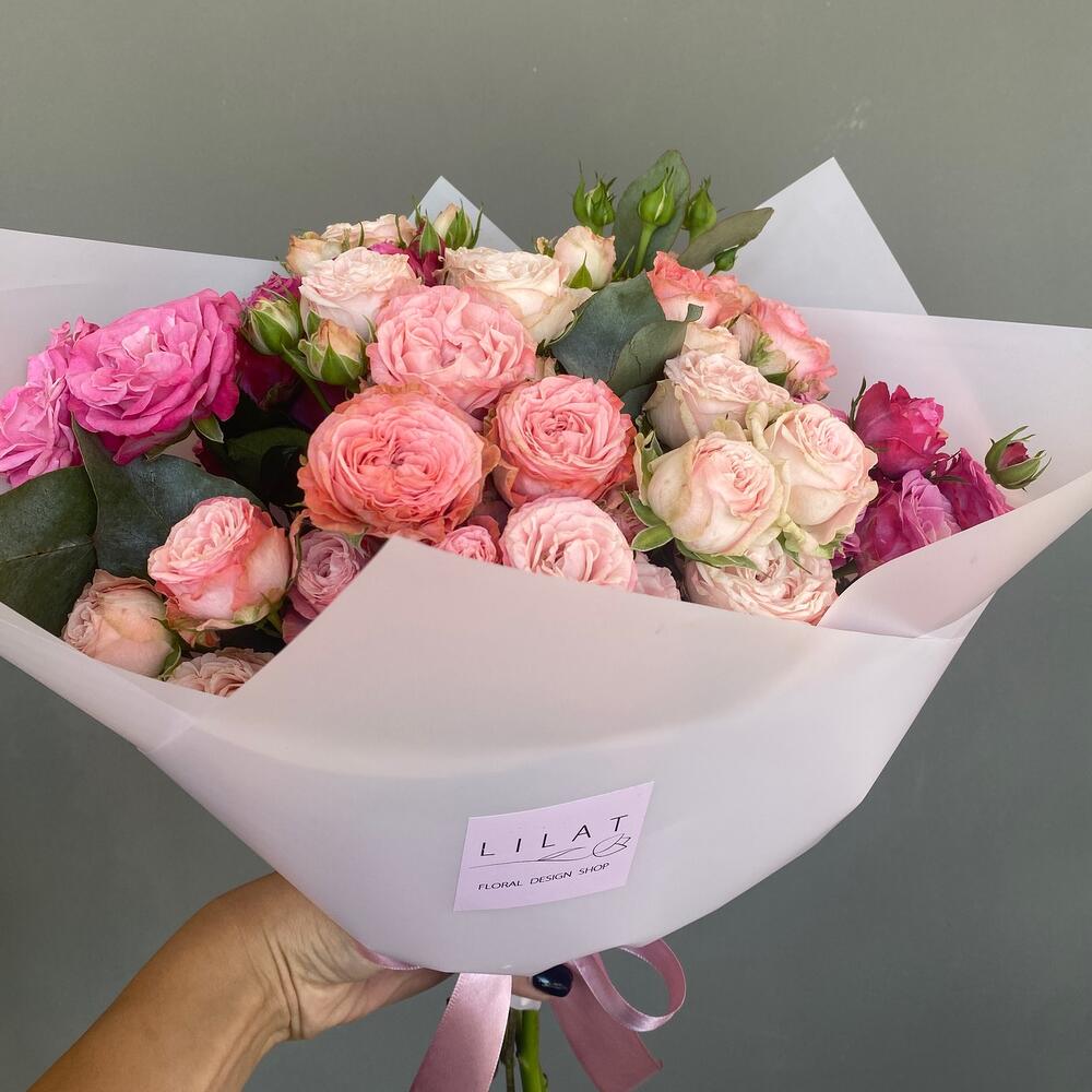 Кустовые розы, Лизиантусы, Пионы, Розы, Хризантемы
