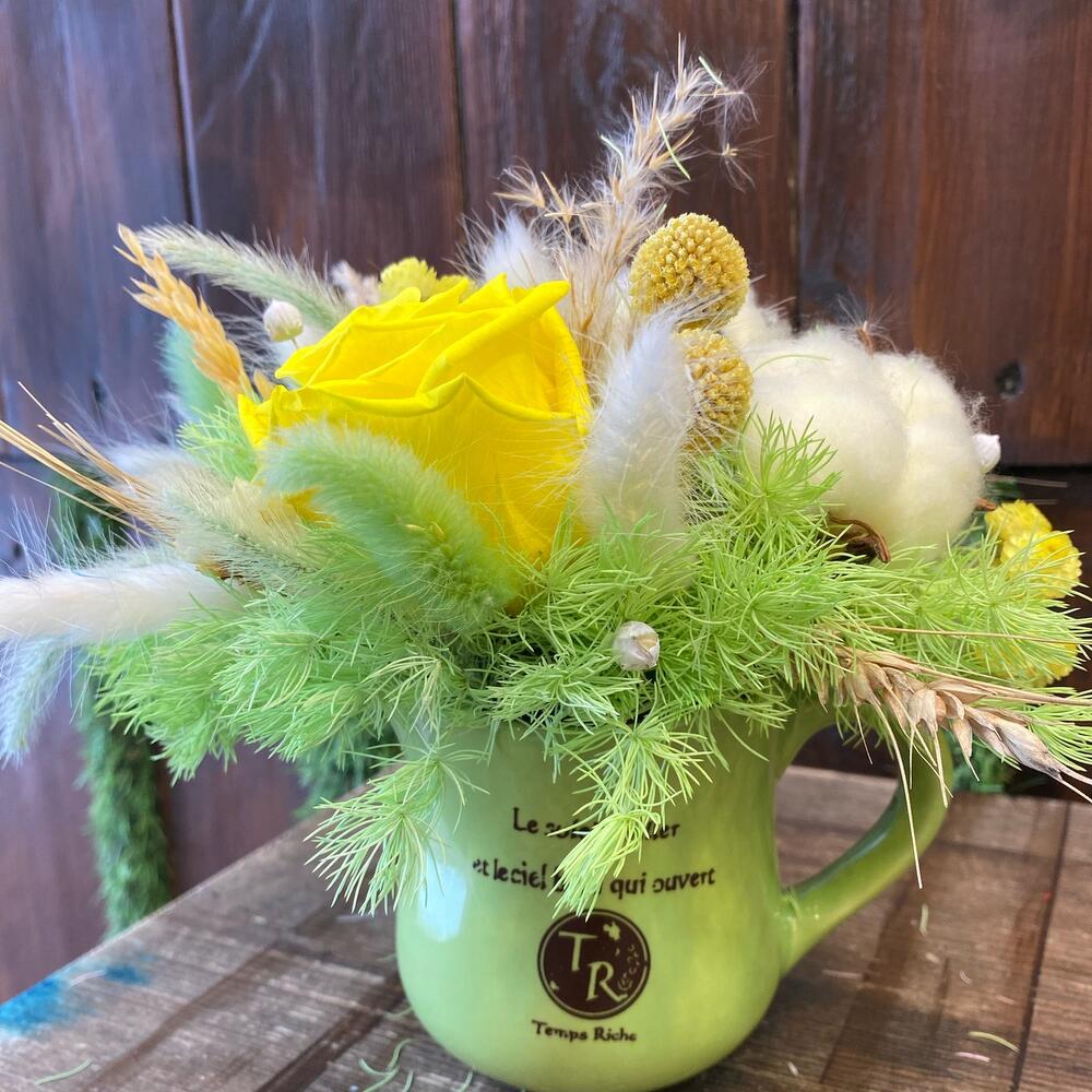 Сухоцветы – 10 шт.Роза стабилизированная – 1 шт.Лагурус (сухоцвет) – 20 шт.коаспедия стабилизированная – 3 шт.Кашпо керамическое – 1 шт.