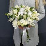 Классический белый букет для пышной свадьбы не выходит из тренда