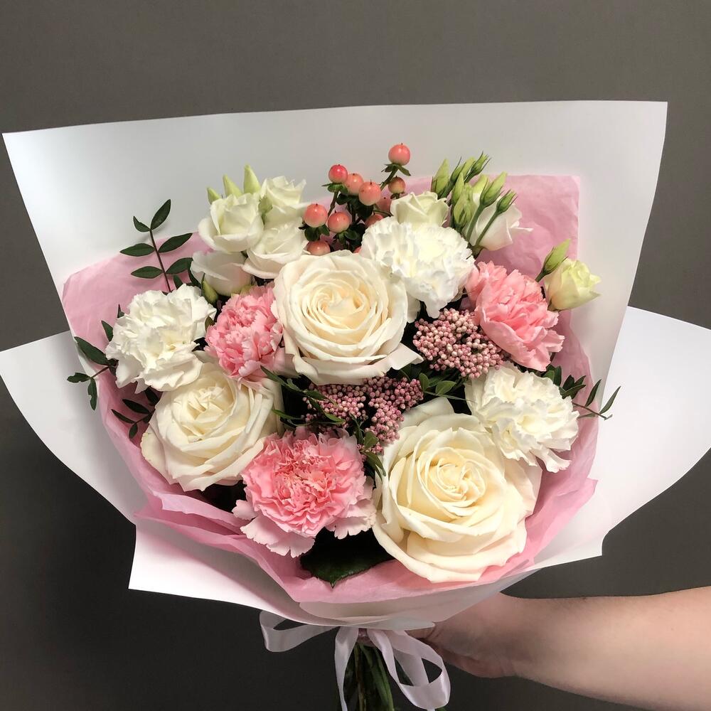 Гвоздики, Кустовые розы, Лизиантусы, Пионовидные розы, Розы