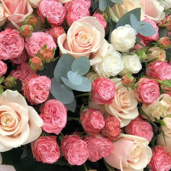 Гвоздики, Кустовые розы, Пионовидные розы, Розы